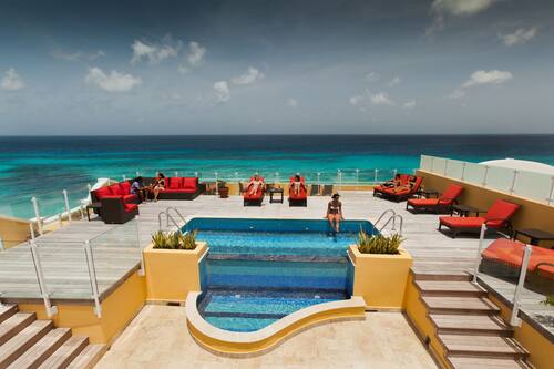 Three pools Four Restaurants six dining. Popular Dover Beach is less than 500 metres away and Enterprise Beach. Boasting super-chic beach club vibes take to the rooftop where youll be wowed by mouth-watering cocktails then dazzled by breath-taking views out over the glimmering Caribbean Sea.