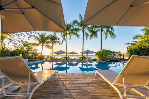 Mont Choisy Le Beach Club. Guests can prepare their meals in the privacy of their own accommodations. Mon Choisy Beach R offers the perfect sun and fun holiday with a saltwater infinity swimming pool and a beach to laze around on whilst fun lovers can head further north to the nearby restaurants bars and shops of Grand Bay.